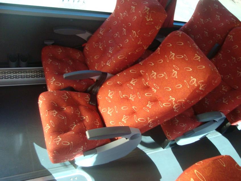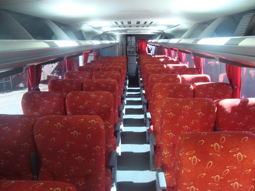 44 lugares poltronas Soft / Executiva, vidros colados, ar condicionado,frigobar/cafeteira elétrica, Toalete, 02 Tvs, DVD, sistema de microfone & som, calefação